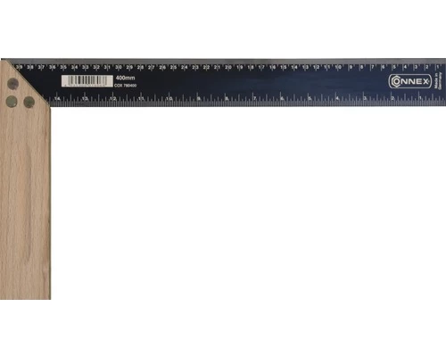Winkelhaak met houten handvat en stalen blad 400 mm, verstek en mm/duim-schaalverdeling