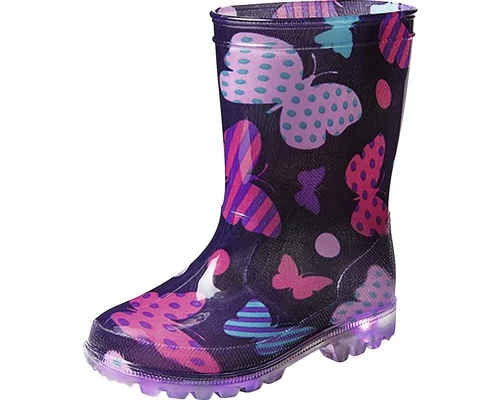 Deze 100% waterdichte, kinderlaars beschermt de voetjes onder alle omstandigheden. De laars is volledig samengesteld uit pvc en daardoor comfortabel, licht van gewicht en slijtvast. Bij iedere stap lichten de 100% veilige LED-lampjes in de zool op. In combinatie met de transparante loopzool zorgt dit voor extra veiligheid in het donker en is het ook nog een feestje om deze laarsjes te dragen.