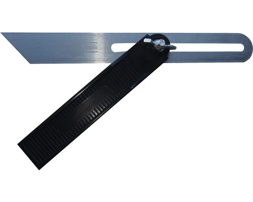 Uitschuifbare zweihaak. Met kunststof handgreep. Blad is vast te zetten met een vleugelmoer.